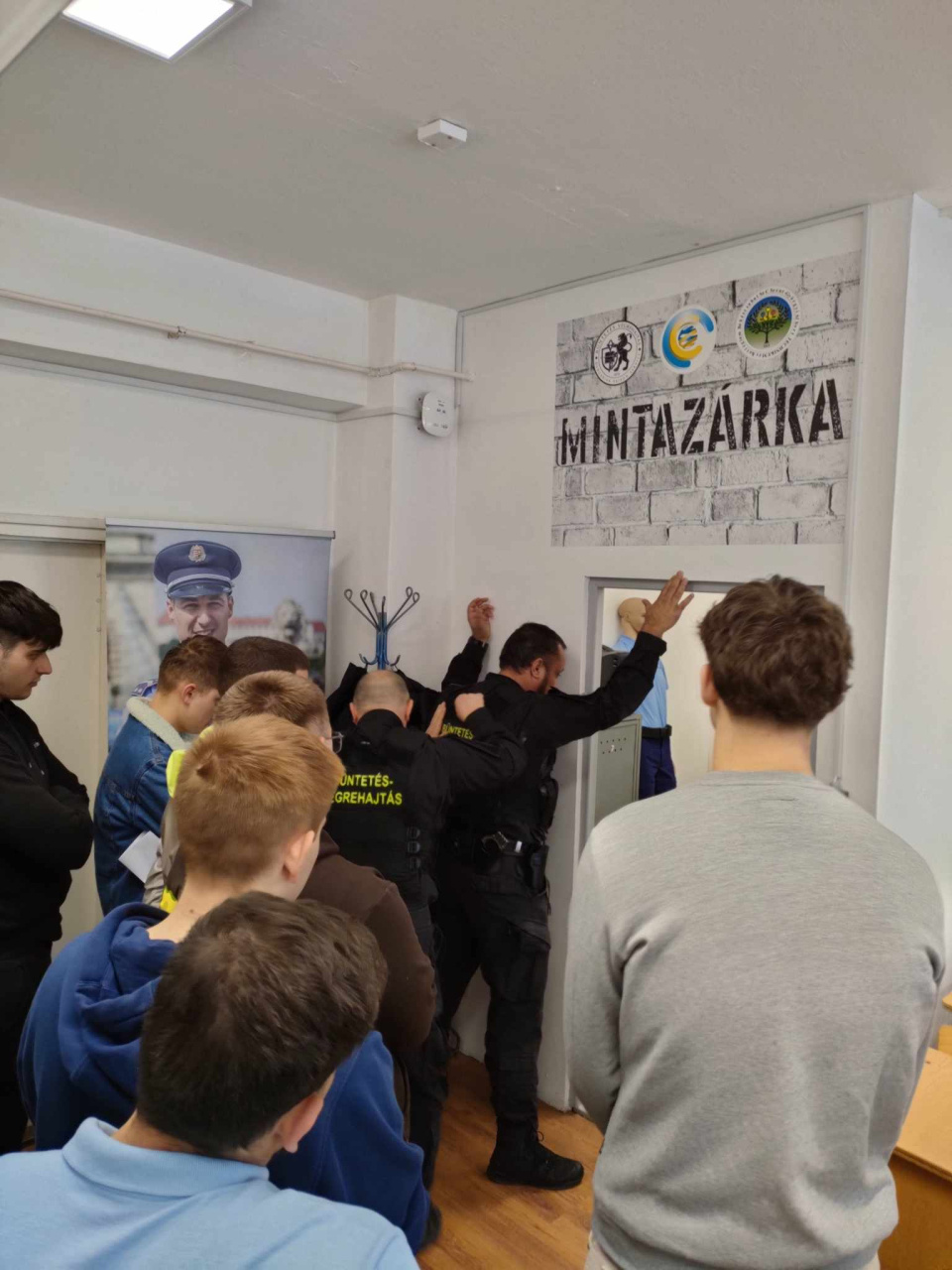 Békés Vármegyei Büntetés-végrehajtási Intézet Műveleti csoportja látványos, interaktív bemutatóját figyelhették meg az iskola tanulói a már átadásra került Mintazárka falai között.